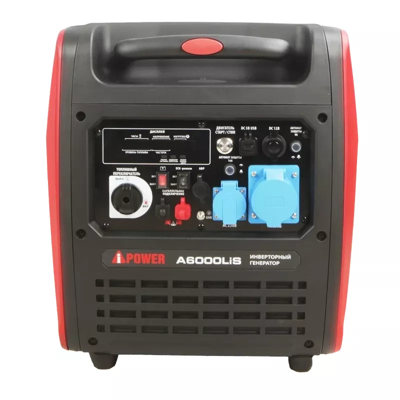 Инверторный генератор A6000LiS оснащен USB розеткой 5А для зарядки гаджетов и удобной розеткой 12V прикуривателя. Стандартная розетка 230В имеет защиту от влаги и пыли IP44.
