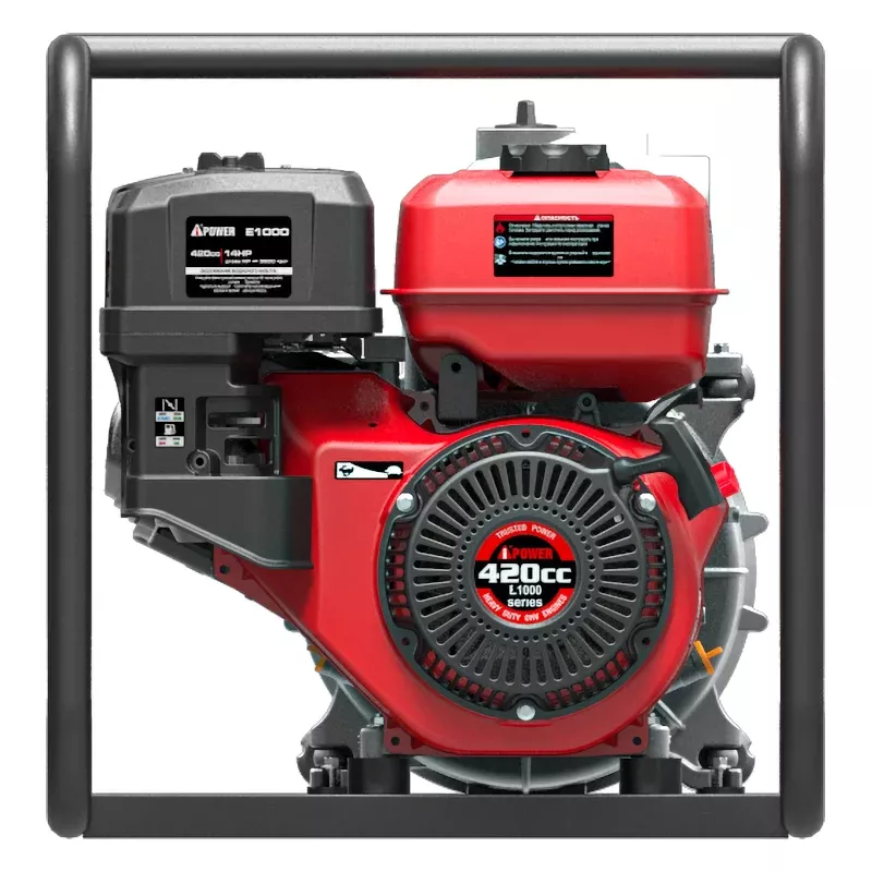 Бензиновая мотопомпа A-iPower с 4-тактным двигателем внутреннего сгорания мощностью 15 л.с. забирает воду с глубины до 8 м и обеспечивает ее подъем на высоту 32 м. Диаметр заливного и выпускного отверстий составляет 100 мм и способствует большой пропускной способности мотонасоса A-iPower AWP100TX.