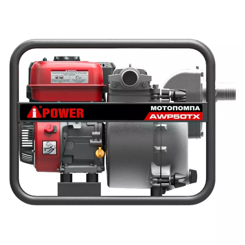 - Бензиновую мотопомпу A-iPower приводит в действие 4-тактный мотор, который выдает мощность 7 л.с. при 3600 об/мин.
