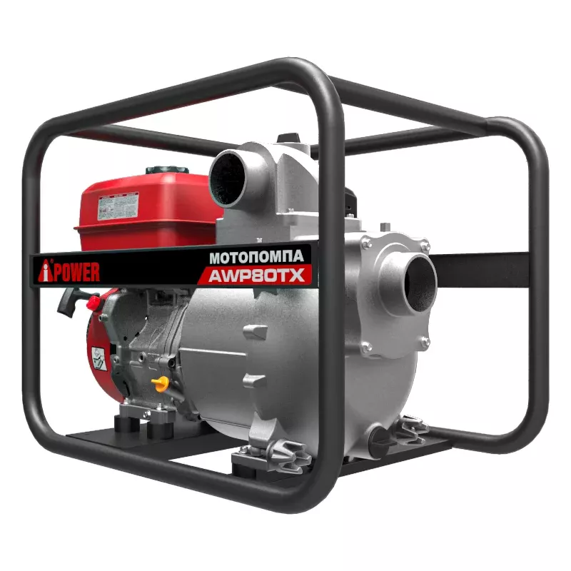 Бензиновая мотопомпа A-iPower обеспечивает забор воды с глубины 7 м и ее подъем на высоту до 29 метров. Четырехтактный бензиновый двигатель мощностью 13 л.с. развивает до 3600 об/мин и обеспечивает высокую скорость перекачки. Большой диаметр заливного и выпускного отверстий, составляющий 80 мм, также значительно повышает производительность A-iPower AWP80TX.