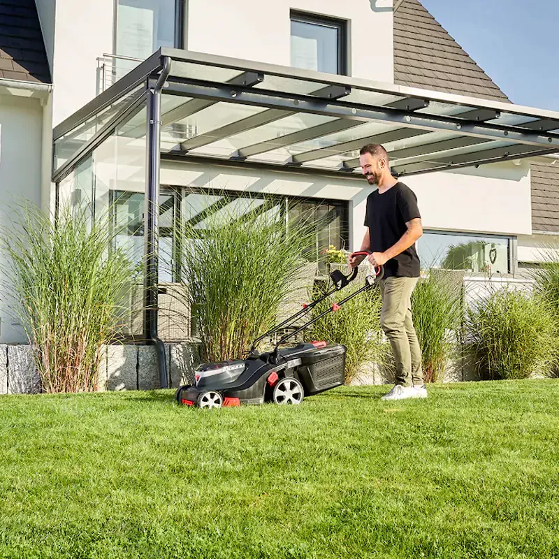 Благодаря небольшому весу, пластиковому корпусу, высокой маневренности и ширине стрижки в 38 см аккумуляторная газонокосилка 3.82 Li Easy идеально подходит для ухода за небольшими садами. Литий-ионный аккумулятор на 18 В обеспечивает эффективную работу на газонах площадью до 300 м2. Вы можете легко отрегулировать высоту скоса в 6 ступенях от 20 мм до 75 мм всего одним движением. Большой травосборник с индикатором наполнения вмещает до 45 л. скошенной травы. Практичная ручка для переноски обеспечивает удобство при транспортировке, а удобный переключатель на кронштейне повышает уровень комфорта при эксплуатации.