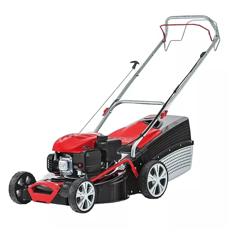 Для облегчения маневренности, газонокосилка имеет колеса различного размера с широким протектором. Передние диаметром 180 мм облегчают маневрирование и управление. Задние ведущие имеют диаметр 220 мм, что позволяет уверенно преодолевать подъемы, небольшие ямы и другие препятствия. Колеса устанавливаются в шарикоподшипниках, для увеличения срока службы.
