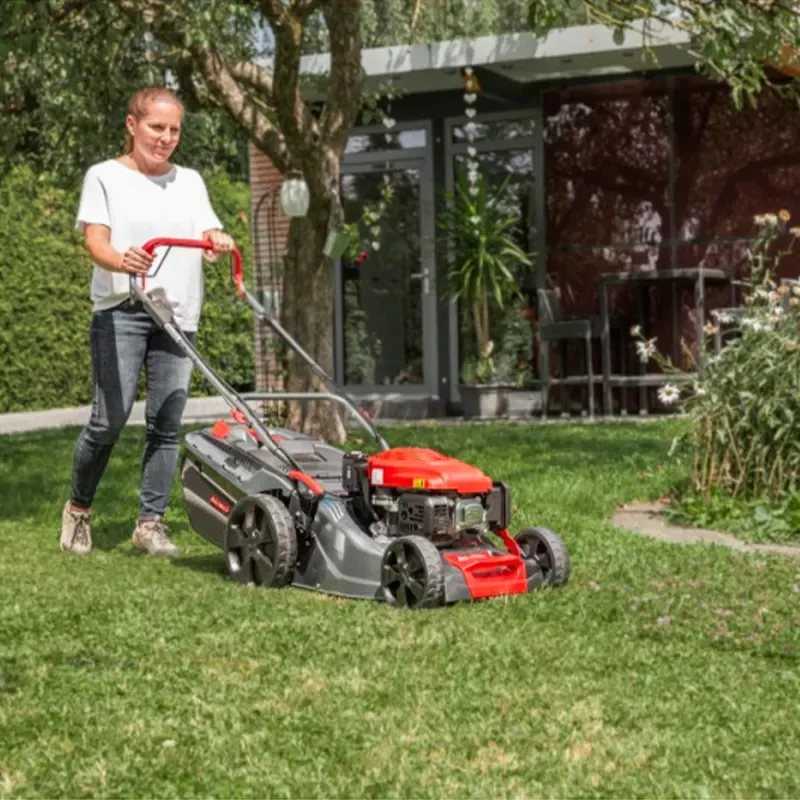 Самоходный тип передвижения значительно облегчает управление газонокосилкой. Вам не придется прилагать физические усилия, чтобы толкать её по участку. За счет этого модель отлично подойдет женщинам или пожилым людям.