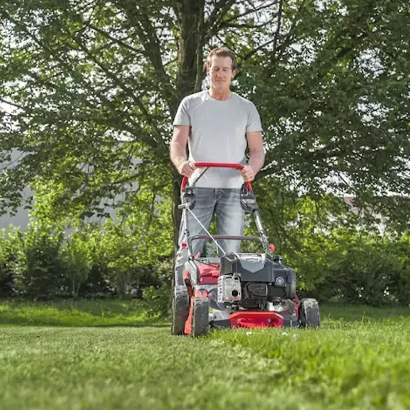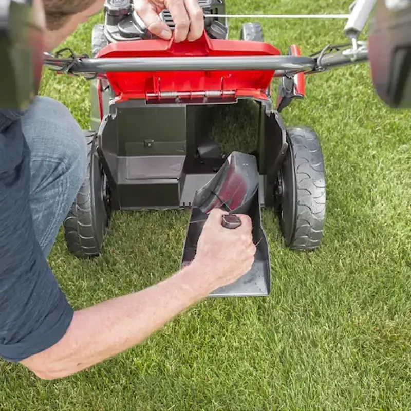 Корпус полностью сделан из стали. Прочный материал надежно защищает внутренние элементы от поломки, если газонокосилка случайно сталкивается с предметами на участке.