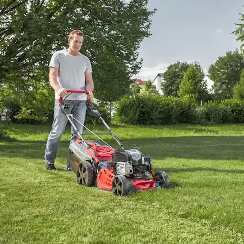 Бензиновая газонокосилка с электрическим запуском обеспечивает (пере) легкий запуск. Благодаря ширине скашивания 51 см бензиновая газонокосилка Premium 520 VSI-B обеспечивает быструю работу даже на больших газонах до 1800 м2. Высота среза регулируется по центру с шагом до 7 от 30 мм до 80 мм. С двигателем Briggs & Stratton мощностью 2,6 кВт и полному приводу (с регулируемой скоростью от 2,5 до 4,5 км / ч) в сочетании с плавными колесами XXL косить сад (даже на склоне) легко.