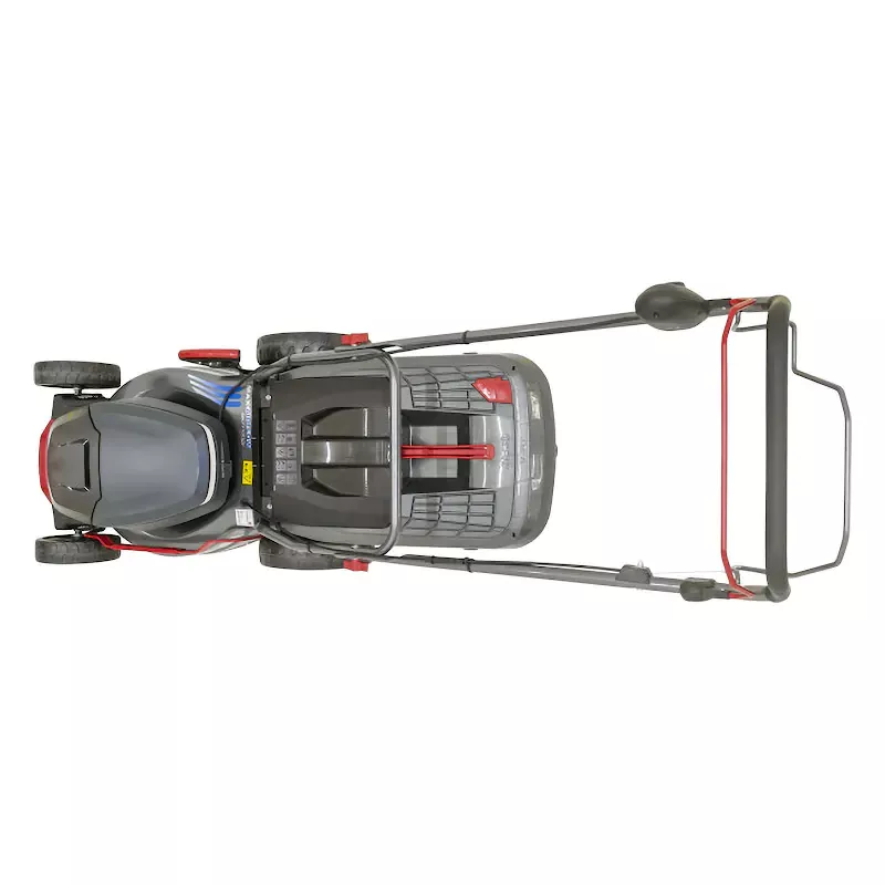В носовой части бензиновой газонной косилки расположена транспортировочная ручка. За неё удобно переносить модель через ступеньки или приводить в вертикальное положение во время хранения.