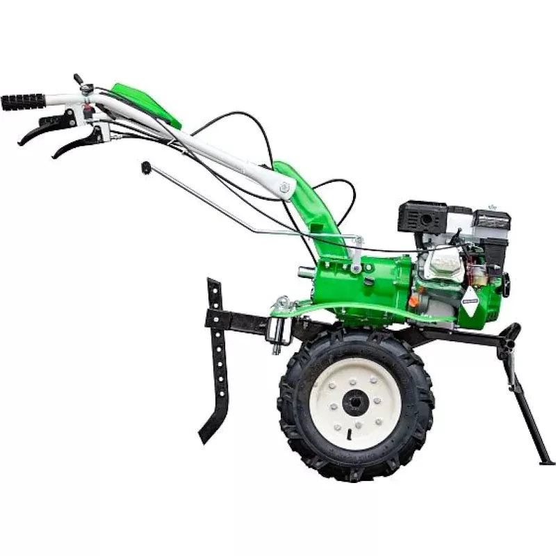 На шестигранные оси диаметром 23 мм можно установить колеса с глубоким протектором, фрезы или грунтозацепы. С помощью соответствующего навесного оборудования бензиновый мотоблок вспашет землю, сформирует грядки, окучит или выкопает картофель и другие корнеплоды, скосит траву, поможет перевезти грузы.