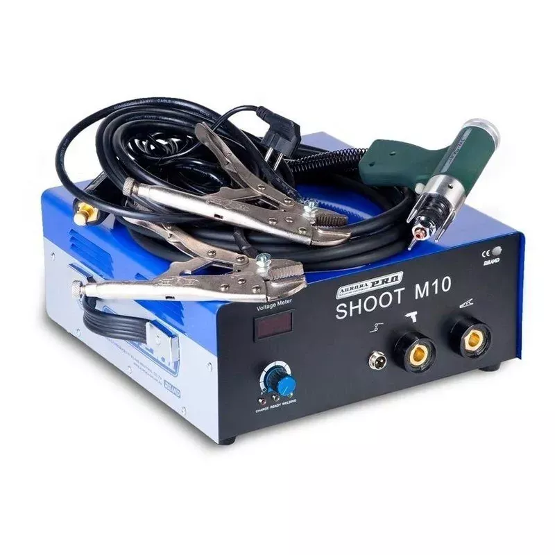 Аппарат точечной сварки AuroraPRO SHOOT M10 поставляется в комплекте с пистолетом для работы с шпильками длинной до 150 мм. Модель также подходит для обработки нержавеющей стали и алюминия.