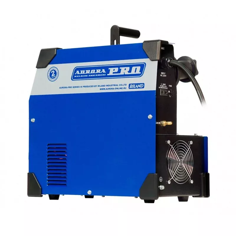 Модель поставляется в комплекте с дополнительными аксессуарами. Благодаря этому не понадобится докупать кабель, зажим на массу и ролик для стальной проволоки. Дополнительно можно приобрести стеллаж с колесиками для аппаратов серии AuroraPRO. Это позволит без усилий перемещать аппарат по рабочей площадке.
