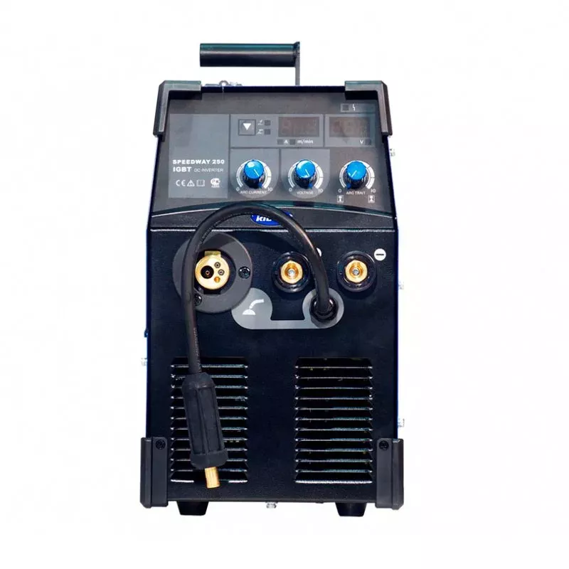 SPEEDWAY 250 - трехфазный аппрат для полуавтоматической сварки стальной проволокой в среде инертного/активного защитного газа MIG-MAG, а также для ручной дуговой сварки штучным электродом MMA. Аппарат прекрасно подходит для работы на производстве, равно как и в профессиональном автосервисе. Удобный интерфейс управления всеми параметрами сварки на лицевой панели позволит настроить полуавтомат для выполнения широкого спектра сварочных работ на высшем уровне. Передовая инверторная технология IGBT собственной разработки гарантирует надежность работы данной техники на долгие годы.