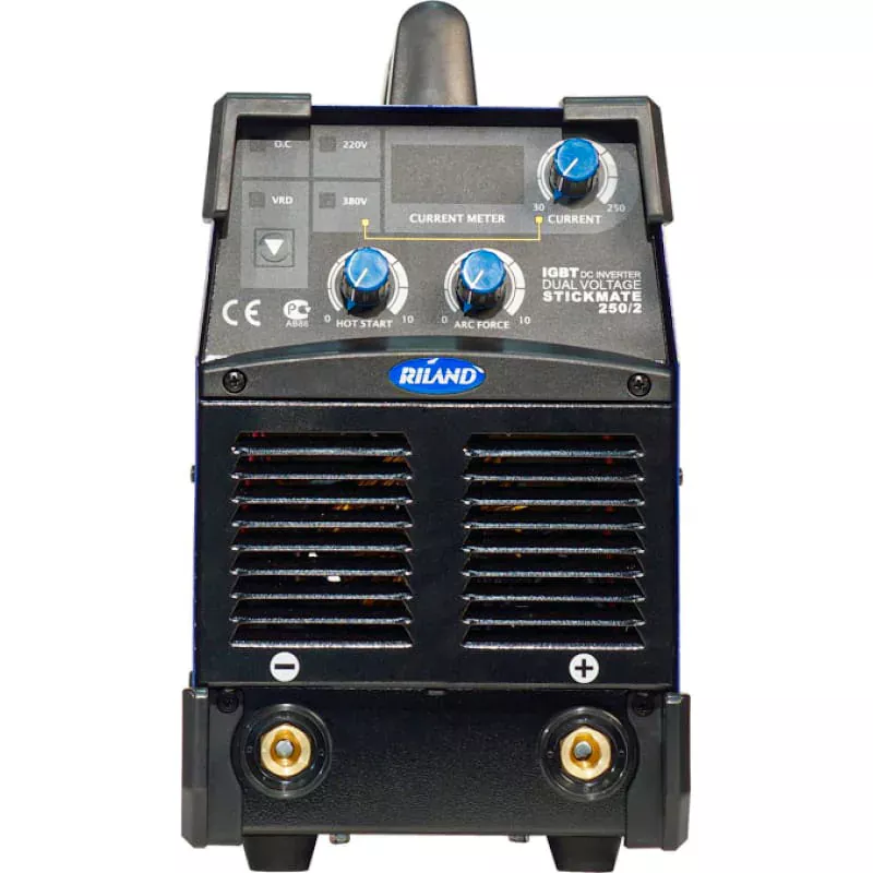 Благодаря тому, что блок электроники изолирован от силовых элементов, на платах не скапливается пыль. Поэтому риск образования статического разряда сведен к минимуму. Устройство поддерживает режим VRD, предназначенный для обеспечения безопасности сварщика в тяжелых условиях проведения работ — при повышенной влажности или в замкнутых пространствах с токопроводящими поверхностями. Инвертор снижает напряжение до минимального уровня 24 В на холостых оборотах и повышает его в момент начала сварки. Сварочный аппарат Aurora PRO STICKMATE 250/2 IGBT DUAL ENERGY автоматически уменьшает силу тока в случае прилипания электрода к металлу, предотвращая тем самым его прокаливание и разрушение.