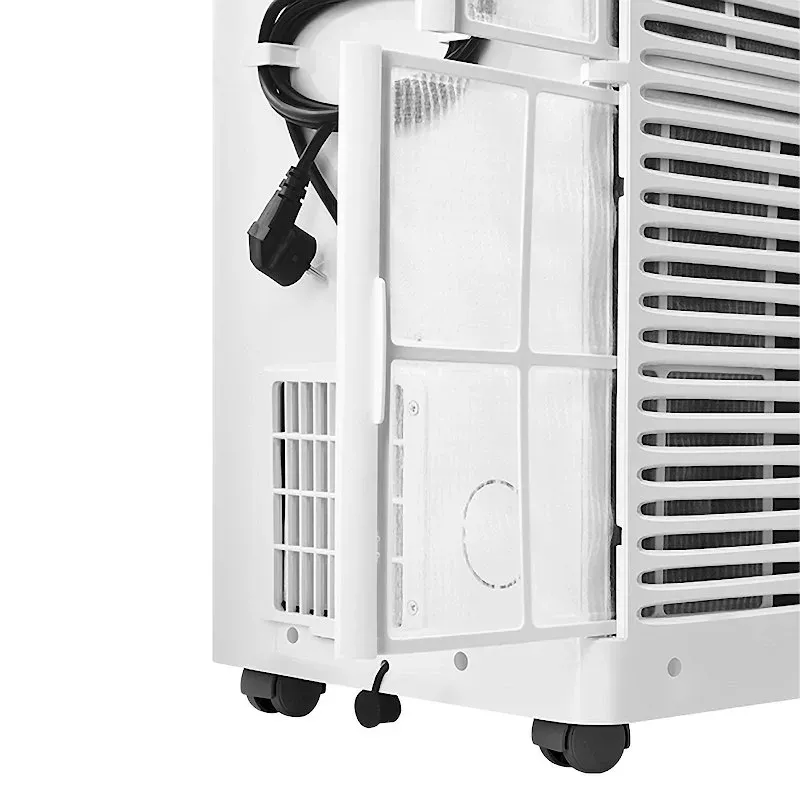 24-часовой программируемый таймер поможет задать удобное время включения и отключения. Съемный фильтр легко достать и промыть под струей воды. Для перемещения кондиционера предусмотрены бесшумные колеса и эргономичные ручки.