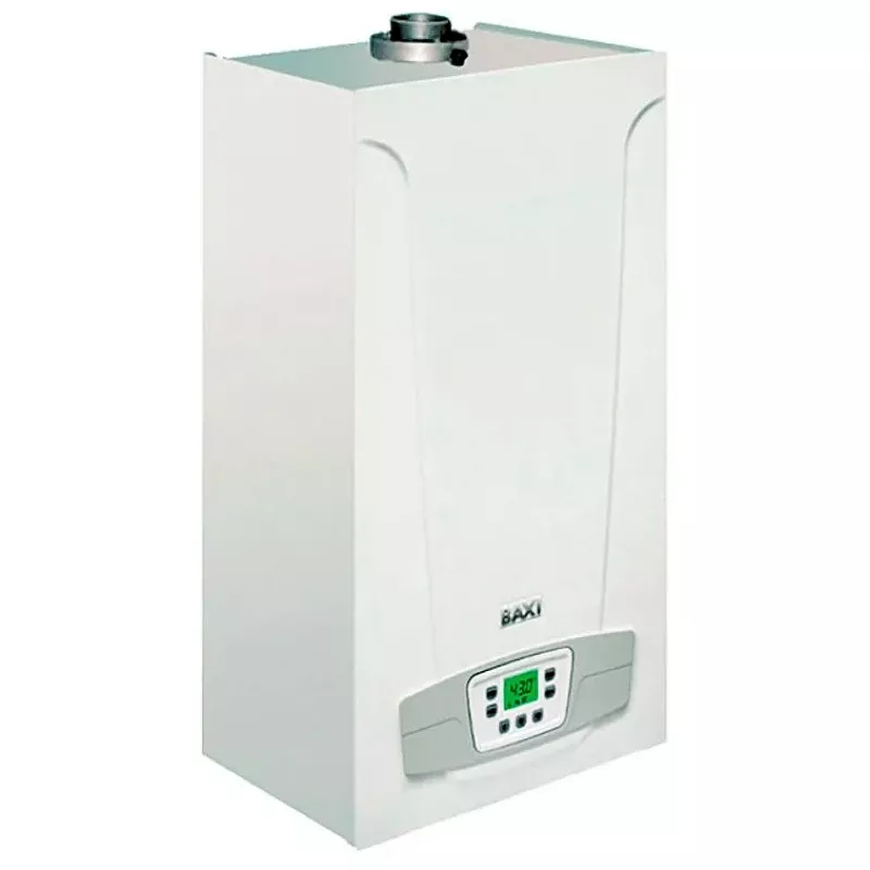 Газовый котел Baxi ECO FOUR 1.24 компактно размещается на стене благодаря небольшим габаритам. Крепления поставляются в комплекте. Оборудование позволяет отапливать жилые и хозяйственные помещения. Температуру можно плавно регулировать в диапазоне от 30_С до 85_С. Аппарат снабжен системами защиты от замерзания и перегрева, предохранительным клапаном давления, датчиками тяги и наличия пламени. В качестве топлива используется природный или сжиженный газ. Тепловая мощность составляет 24 кВт.