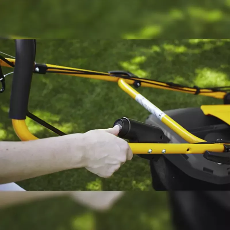 - Эргономичная складная рукоятка с эксцентриковыми зажимами и возможностью регулировки - Компактное хранение газонокосилки благодаря складной рукоятке, регулируется эксцентриковыми зажимами. Удобная регулируемая по высоте рукоятка управления позволяет устанавливать высоту на максимально комфортном для оператора уровне, у неё есть мягкая резиновая обтяжка, понижающая передаваемую на руки вибрацию. Рукоятка также складывается, что очень удобно при транспортировке и хранении.