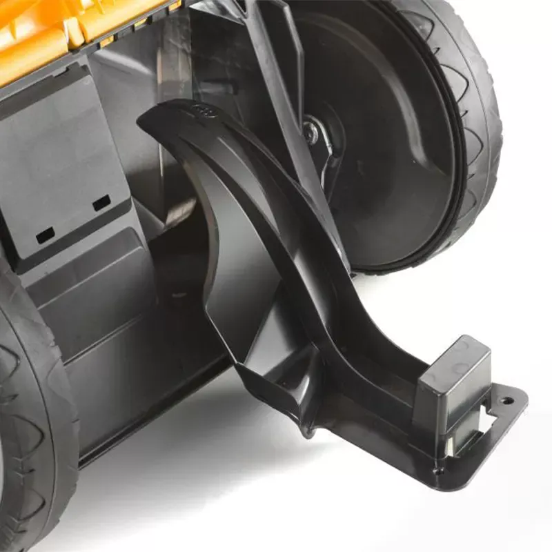 Высота стрижки настраивается 5-ступенчатым рычагом, который находится у заднего колеса. Настройка позволит работать с разными видами газонов или попробовать несколько вариантов для вашего участка в качестве эксперимента.