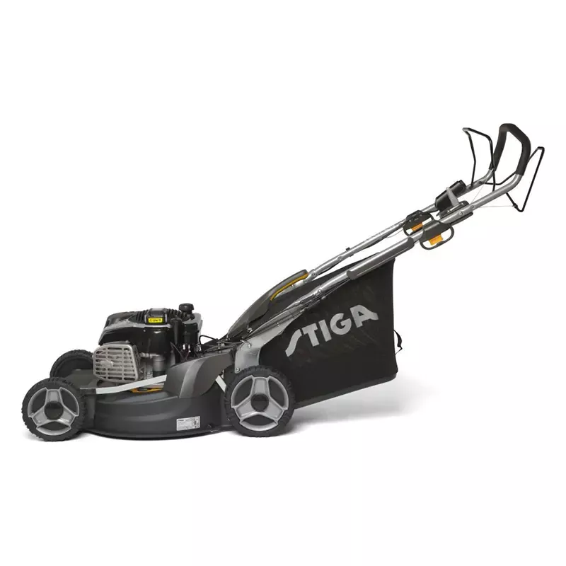 Практичная бензиновая газонокосилка Stiga Twinclip 55 SVEQ B оснащена вместительным травосборником (70 л), который легко снимается для опустошения и имеет индикатор уровня заполненности.