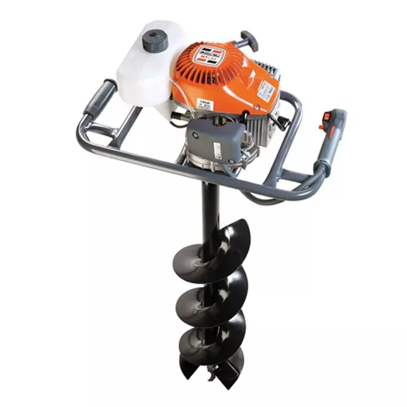 - Мотобур для управления одним оператором. Не требует прикладывания больших усилий при работе. Легко переносить его от точки до точки. Элементы управления расположены под одной рукой.