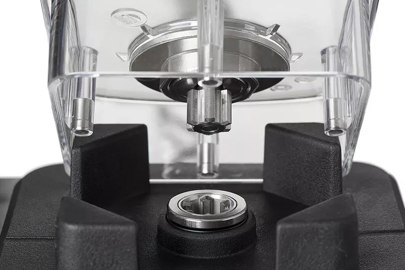 Жесткое, износоустойчивое соединение ножа стакана и вала двигателя по технологии «Metal-To-Metal Drive», без пластиковых или резиновых демпферов. Приводная муфта из нержавеющей стали крепится на валу двигателя обратным резьбовым соединением, что исключает смещение муфты - проблему характерную для технологии "горячей посадки".