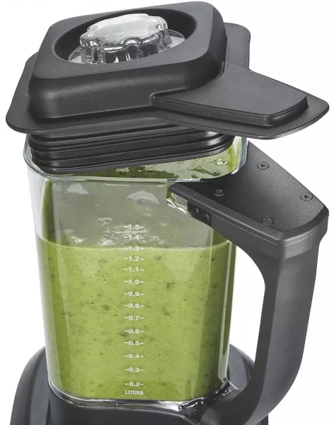 Блендер укомплектован обновленным ударопрочным стаканом из поликарбоната объемом 1,4л, оснащен датчиком установки стакана и открытия крышки, который предотвращает повреждение механизма сцепления. Обновленный механизм сцепления двигатель стакан - метал метал обеспечивает надежность и долговечность.