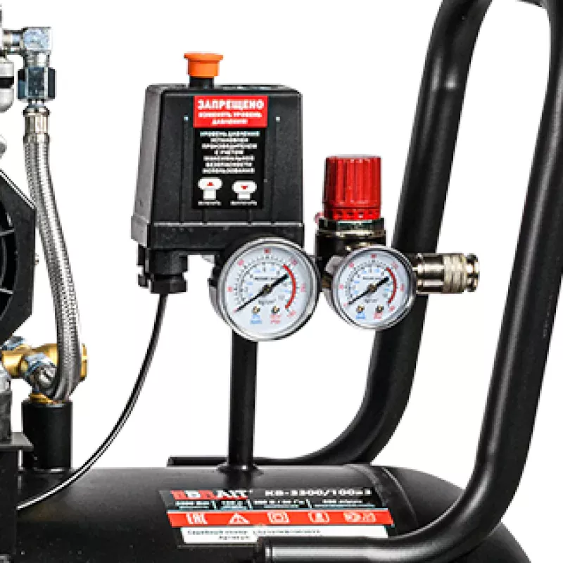 Воздушный компрессор BRAIT КВ-3300/100Х3 используется для производства сжатого воздуха в большом объеме. Конструкция включает в себя ресивер. Это позволяет воспользоваться запасом сжатого воздуха и избежать кратковременных включений двигателя.