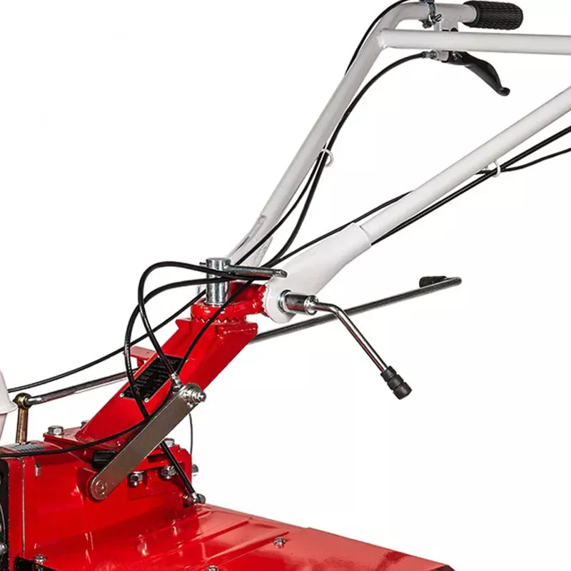 - Эргономичная рукоять с удобным хватом и прорезиненными накладками. У данной модели мотоблока, предусмотрена многофункциональная поворотная ручка управления для оператора. Возможность менять положения как по горизонтали, так и по вертикали значительно упрощает работу в труднодоступных местах.