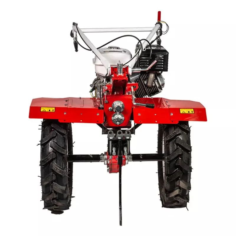 - Большие пневматические колёса 5х12 или 19х7х8 (в зависимости от комплектации) обеспечивают отличную проходимость мотоблока по местности.
