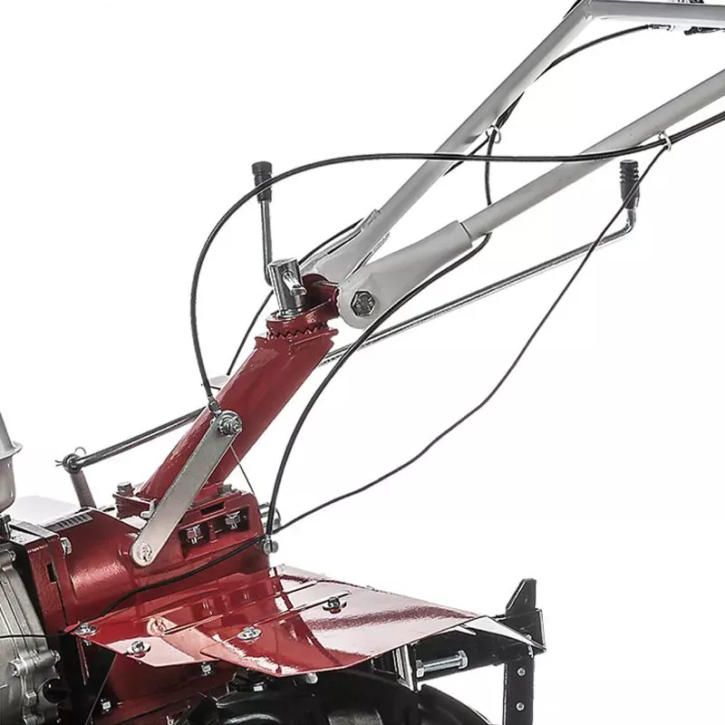 - Эргономичная рукоять с удобным хватом и прорезиненными накладками. У данной модели мотоблока, предусмотрена многофункциональная поворотная ручка управления для оператора. Возможность менять положения как по горизонтали, так и по вертикали значительно упрощает работу в труднодоступных местах.