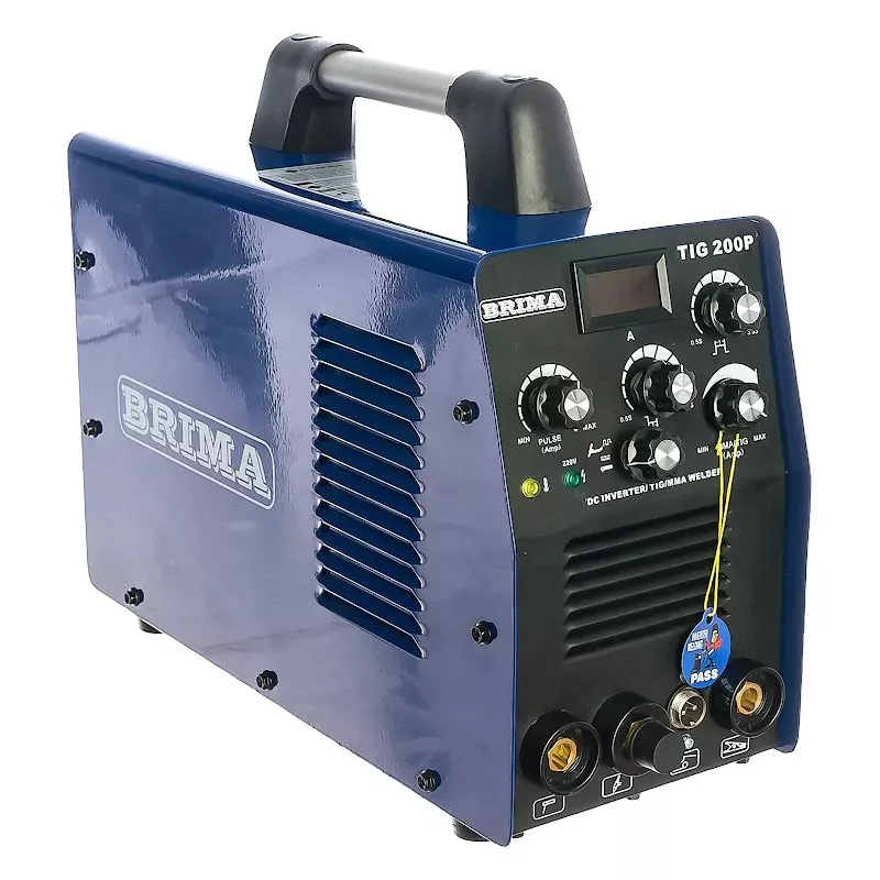 Сварочный аппарат BRIMA TIG-200P – профессиональная модель для работы с помощью вольфрамового электрода. В инверторе есть импульсный режим, который позволяет работать с заготовками толщиной до 0,5 мм, не перегревая зону возле шва.