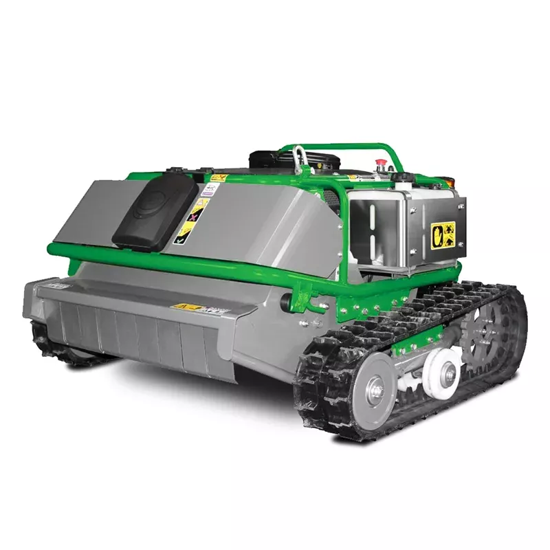 Гусеничный привод с автоматическим натяжением. Широкая поверхность гусениц позволяет обеспечить отличное сцепление с поверхностью и снизить давление на грунт, поэтому косилка способна не только срезать грубую растительность, но и работать на газоне, не оставляя на нем следов. Механизм привода оснащен автоматическим натяжителем гусеничной ленты, поэтому она не соскакивает с колес и роликов при возникновении нештатной ситуации или при растяжении в ходе длительной эксплуатации.