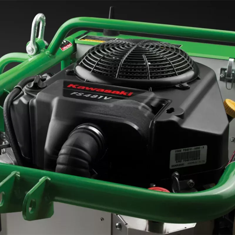 Двухцилиндровый бензиновый двигатель Kawasaki FS481V с дистанционной электрической системой запуска. Двигатель воздушного охлаждения с вертикальным валом, верхним расположением клапанов, V-образный, с углом развала цилиндров 90 градусов. Мотор оснащен двухэлементным воздушным фильтром для возможности работы в пыльных условиях, имеет чугунную гильзу цилиндра для увеличения срока службы и систему автоматического декомпрессора для облегчения пуска.