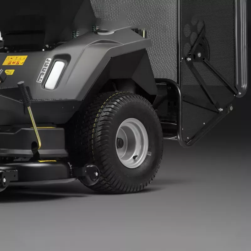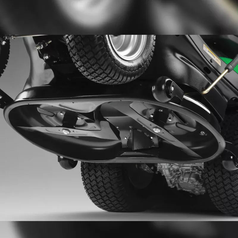 Система оптимального кошения Pivot Control Конструкция переднего моста и косильной деки представляет собой единую систему оптимального «плавающего» кошения Pivot Control. Колеса и дека машины во время работы повторяют рельеф обрабатываемого участка, благодаря чему достигается высокое качество стрижки травы. Система Pivot Control особенно эффективна при работе на неровных участках и склонах.