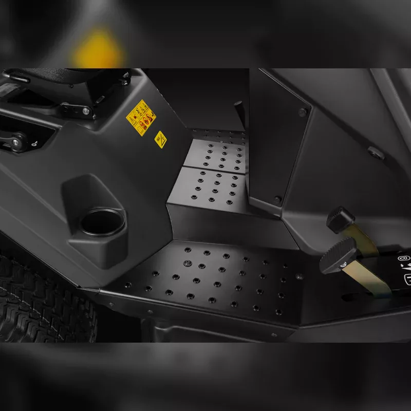 Информативная панель управления MAX Для комфортной работы оператора конструкторы Caiman Comodo MAX 2WD особое внимание уделили эргономике. На передней панели удобно размещены все органы управления машиной: цифровая панель с основной информацией о машине, рычаг плавного изменения скорости, включение привода деки и системы освещения.