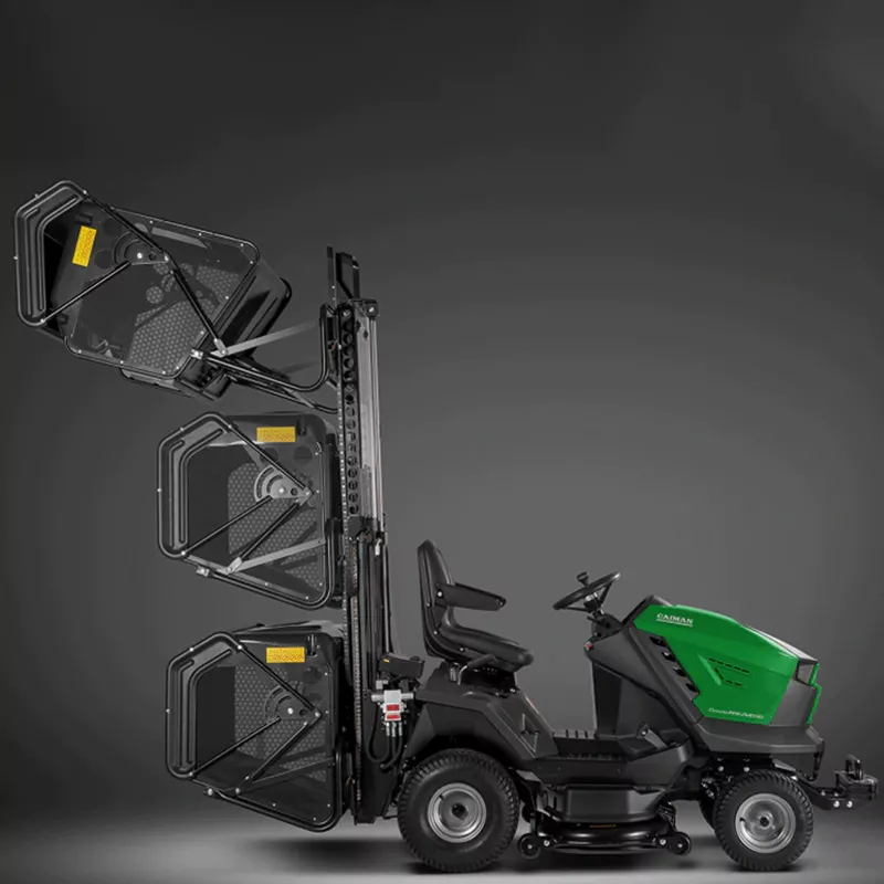 Газонокосильная машина Caiman Comodo Max 2WD HD - заднеприводная модель, которая имеет динамический дизайн и оснащается инновационной системой подъема и выгрузки травосборника на высоте до 187 см. Таким образом можно выгружать траву в кузов грузовика или прицепа. Объем травосборника составляет 400 литров.