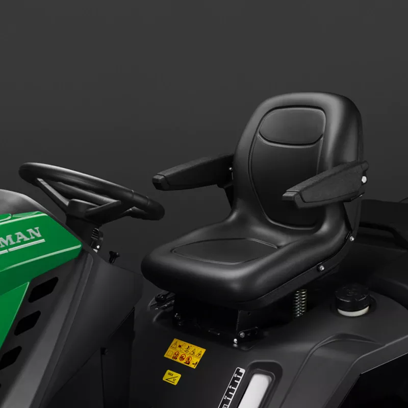 Колеса и режущая дека с плавающей подвеской во время работы повторяют все неровности рельефа, обеспечивая аккуратный результат даже на сложном ландшафте.