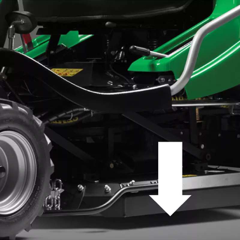 Регулировка высоты стрижки от 50 до 100 мм Рычаг регулировки удобно расположен под рукой. Дека имеет 4 положения для кошения и одно транспортировочное (120 мм над землей).