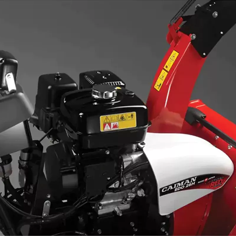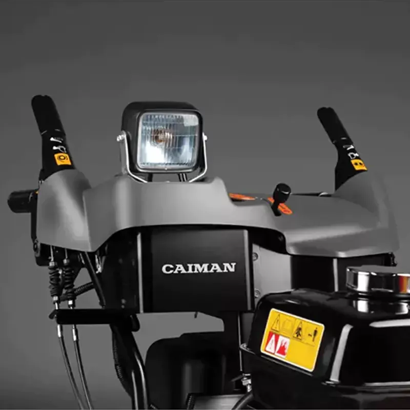 Обороты двигателя самоходной снегоуборочной машины Caiman EDO 26H настраиваются вручную. Для этого предусмотрен 2-позиционный рычаг. Это позволит самостоятельно подобрать параметр в соответствии с нагрузкой.