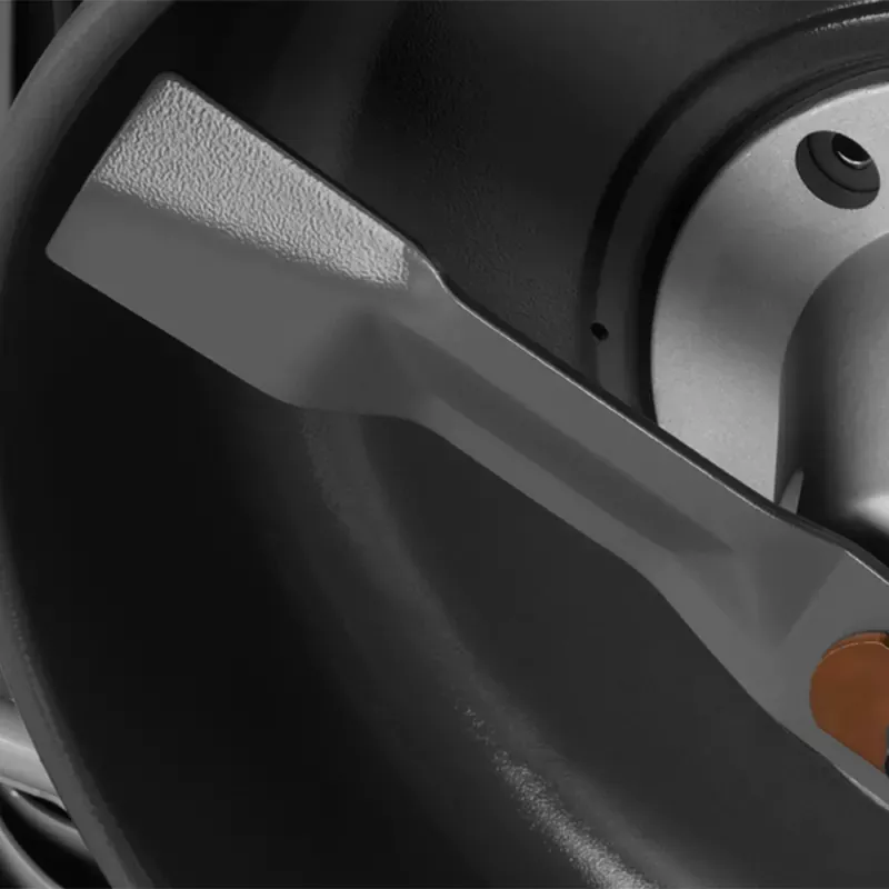 Колеса на двойных подшипниках. Обеспечивают плавность хода и имеют длительный срок службы. Специальные скребки помогают удалять обрезки травы, прилипшие к колесам, поэтому очистка занимает меньше времени.