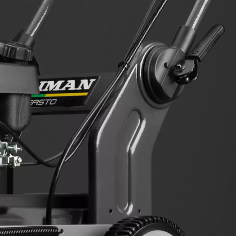 Складная регулируемая по высоте комфортная рукоятка. Легко складывается и раскладывается, а также регулируется под любой рост оператора. Удобный хват рукоятей позволяет с легкостью управлять машиной даже на неровном рельефе.