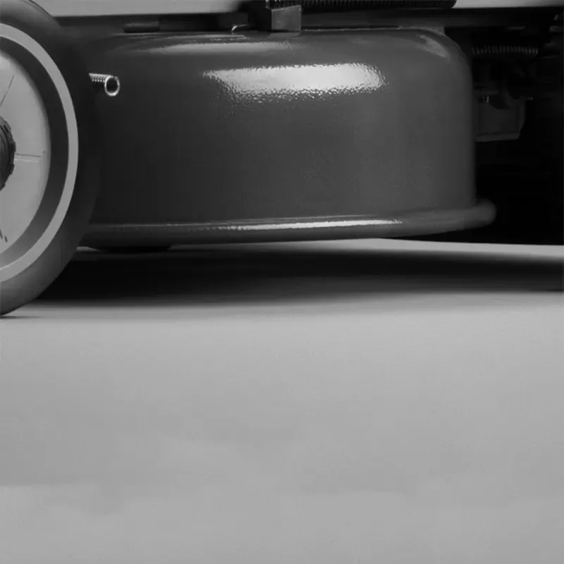 Профессиональная стальная режущая дека с ударопрочным молотковым покрытием. Корпус газонокосилки изготовлен без использования сварных швов из единого листа металла толщиной 1,8 мм. Это обеспечивает конструкции высокую прочность и долговечность. Специальное молотковое покрытие в 3 раза более прочное, чем стандартная покраска дек. Это позволяет эффективно защитить корпус от царапин, ударов и влажности.