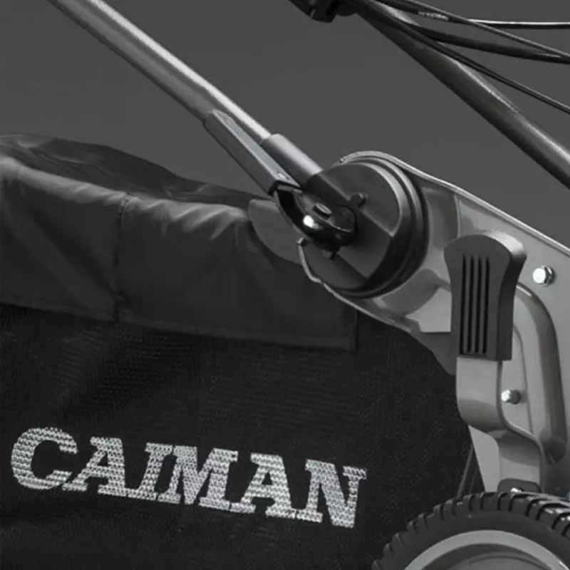 Высота среза травы в бензиновой газонокосилке CAIMAN регулируется в диапазоне от 20 до 70 мм перестановкой рычага в одно из 8 положений. Установите необходимый уровень в зависимости от состояния газона.