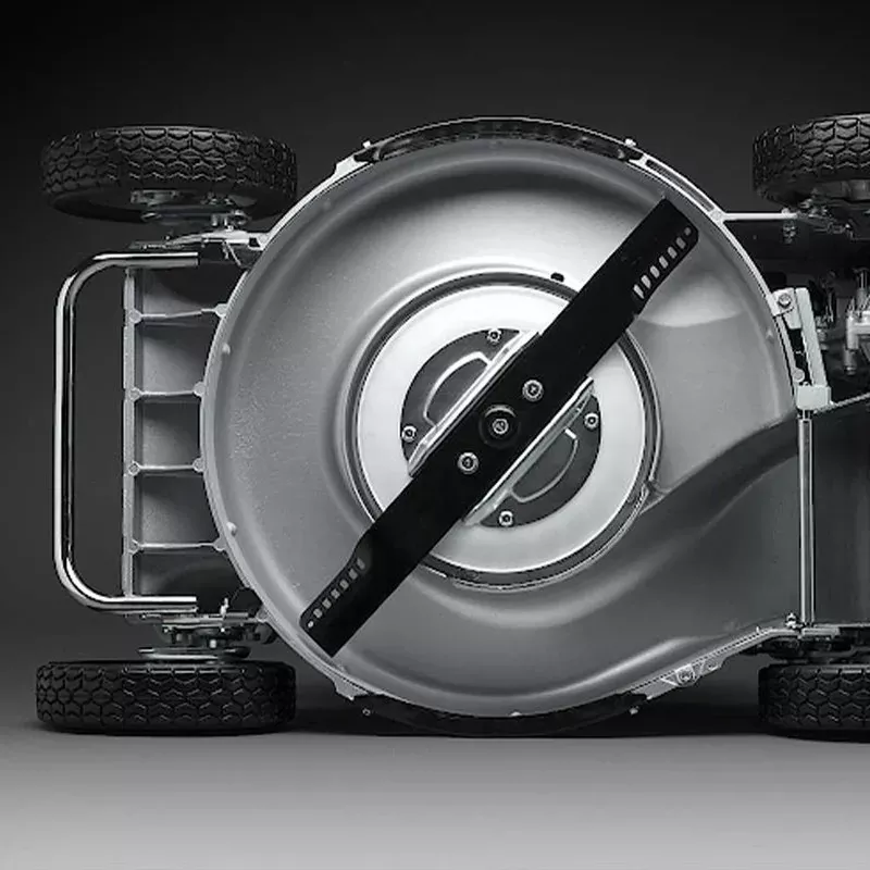Алюминиевый корпус газонокосильной деки. Алюминиевый корпус деки выполнен методом литья под давлением. Обладает легкостью, высокой прочностью и жесткостью. По краям имеются защитные стальные накладки для защиты от ударов и износа. Дека не подвержена коррозии, невосприимчива к едкому травяному соку и бензину, термоустойчива.