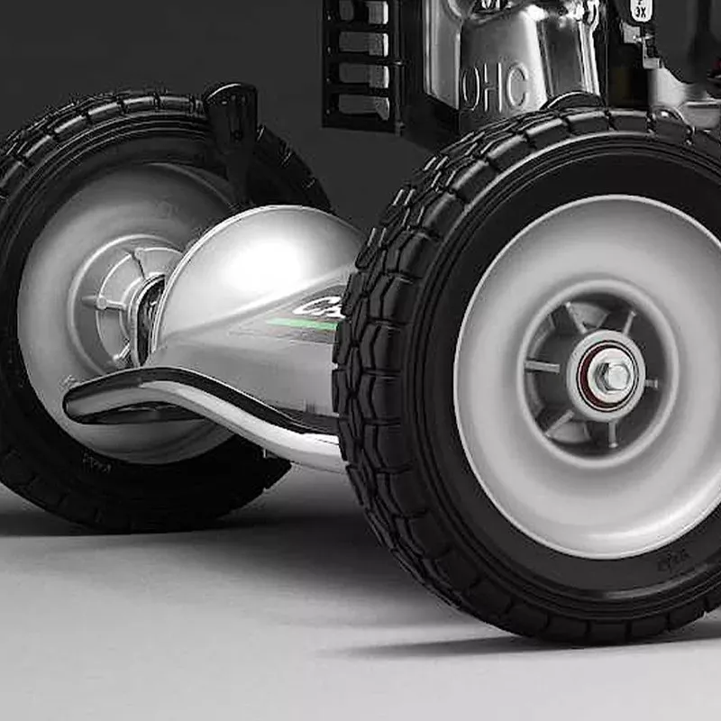 Передние колеса из алюминия на подшипниках. Обеспечивают стабильность и плавность хода. Облегчают работу оператора.