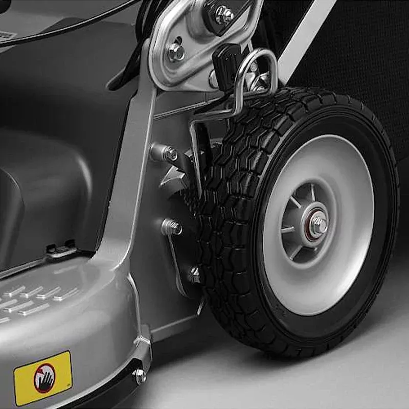 Регулировка высоты стрижки. Система регулировки высоты стрижки позволяет устанавливать уровень высоты среза одним движением сразу по четырем колесам. Диапазон высоты стрижки от 15 до 77 мм.