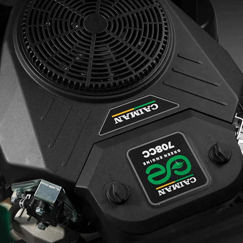 Высокопроизводительный экологичный двигатель Caiman Green Engine 708CC Конструкция из 2 цилиндров лучше сбалансирована по сравнению с одноцилиндровыми двигателями, что позволяет достигать более высоких оборотов при более низкой вибрации. Благодаря меньшему объему каждого отдельного цилиндра нагрузка на весь двигательный узел ниже, а выходная мощность выше. Ресурс такого двигателя в 1,5 раза больше одноцилиндрового. Система смазки под давлением обеспечивает уверенную работу машины на склонах. Чугунная гильза цилиндра с улучшенными противоизносными характеристиками и двухступенчатая система фильтрации воздуха обеспечивают длительный срок службы. Технологии наплавки из сплава кобальта используется при изготовлении впускных и выпускных клапанов для повышенной износостойкости. Мотор сертифицирован для использования в странах Европы и Японии и соответствует директиве №2016/1628 по уровню выброса вредных веществ.