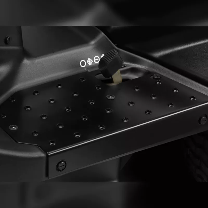 Металлические подножки и бампер MAX Металлические подножки и бампер выполнены из листового металла толщиной 3 мм. Подножки имеют противоскользящее покрытие для повышения устойчивости при работе в сложных условиях. Передний бампер, имеющий широкий профиль, состоит из трех отдельных сегментов, что увеличивает срок его службы.