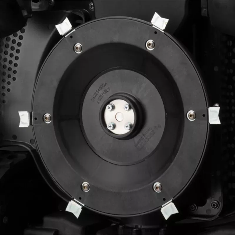 Высокоэффективные бесщеточные электродвигатели. Бесщеточные моторы, приводящие в движение колеса и нож, обладают длительным сроком службы и меньше нуждаются в обслуживании по сравнению со щеточными. Кроме того, они имеют ниже уровень шума и расход электроэнергии.