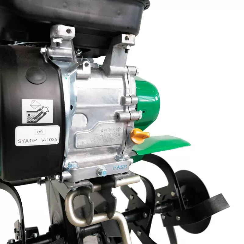 Экологичный мотор премиум-класса оснащен губчатым фильтром в масляной ванне, который превосходно очищает сильно запыленный воздух, чугунной гильзой цилиндра, повышающей износостойкость и надежность. Изменение угла наклона клапанов на 25 градусов значительно увеличило объем впускаемого воздуха и отводимых выхлопных газов, и как следствие, мощность. Особая форма камеры сгорания позволила повысить эффективность сжигания топлива и снизить уровень вредных выбросов.
