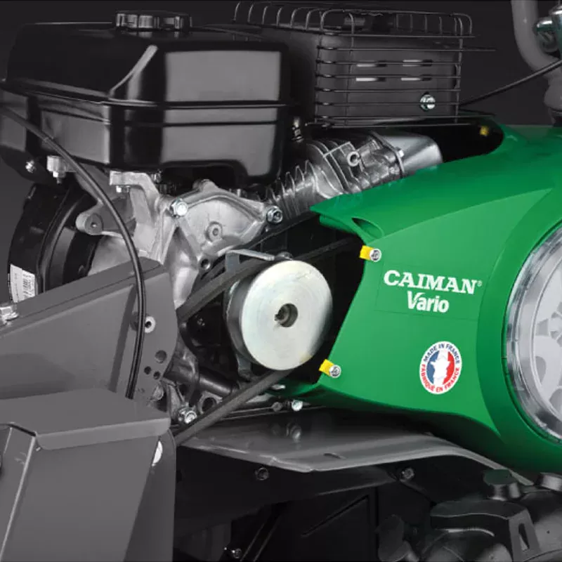 Привод переднего навесного оборудования Мотоблоки серии Vario оснащены приводом переднего навесного оборудования. Шкив надежно закрыт защитным кожухом. Привод позволяет использовать широкую гамму навесного оборудования: снегоуборщик, щетку, роторную косилку, газонокосилку. Благодаря этому вы можете работать с мотоблоком Caiman Vario круглый год!