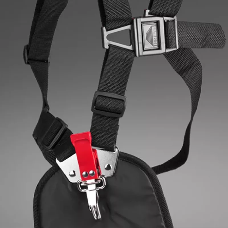Профессиональная подвеска Ergomatic надевается на два плеча за счет чего не понадобится удерживать инструмент на весу в руках. Такая оснастка оптимально распределяет вес косы, что упрощает работу и облегчает маневрирование. Мягкий наплечный ремень снижает передачу вибраций и легко регулируется по длине.