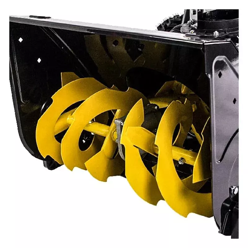 Шнек самоходного снегоуборщика CHAMPION ST553 полностью сделан из стали и оснащен острыми зубьями. Прочная оснастка без труда перемалывает плотные комки снега и справляется с обледеневшими сугробами.